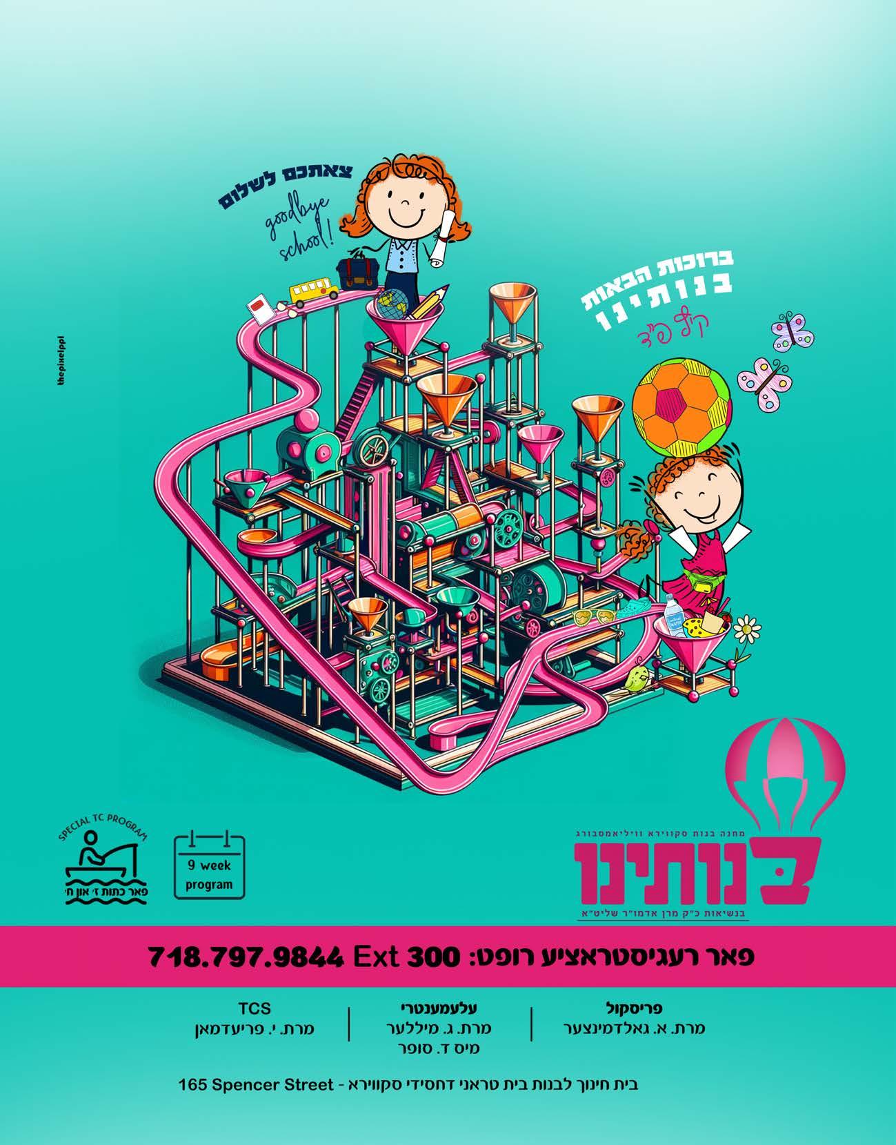 Chassidishe day camp seeking counselors for exciting summer program. For preschool - 718-490-6312 For elementary718-916-9359