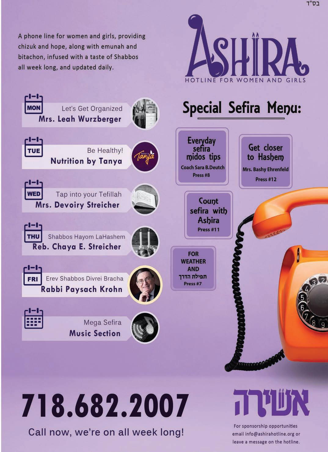 The renowned Rebetzin Aidel Miller from Yerushalayim Is now available to remove “Ayin Horah” over the phone. Call: 718.689.1902 or 516.300.1490