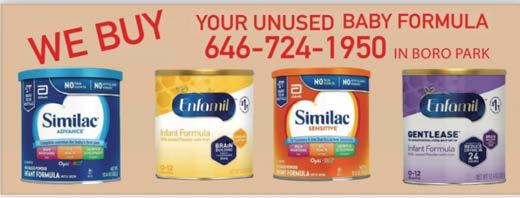 similac advanced kosher formula 347-622-1391 china closet and seforim shank, 4 dining room chairs, tote bag. call 347-733-2715