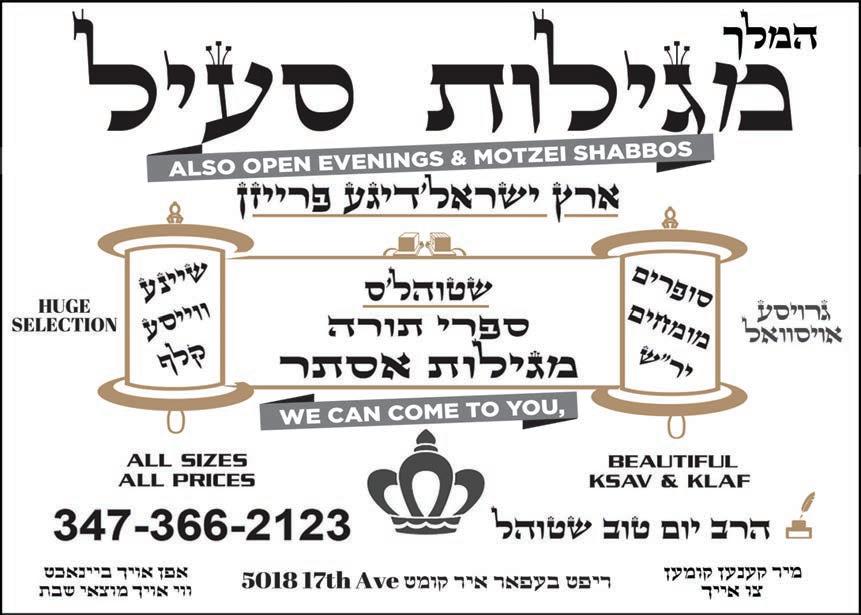 The renowned Rebetzin Aidel Miller from Yerushalayim Is now available to remove “Ayin Horah” over the phone. Call: 718.689.1902 or 516.300.1490