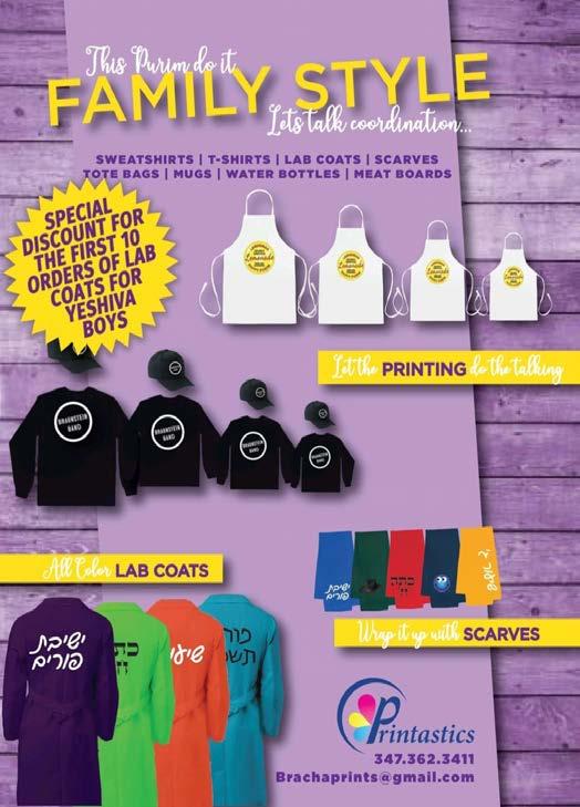 Get your mishloach manos, sweatshirt, costumes etc. cricited in time for purim. Discounts and corporate wholesale available, professional advice and ideas included in price. 347-610-3839 Lost