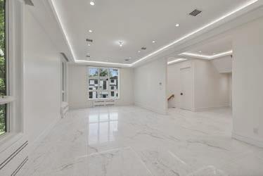Quiet Scandinavian baths, minimalist foyers, or tonal open-concept kitchens.