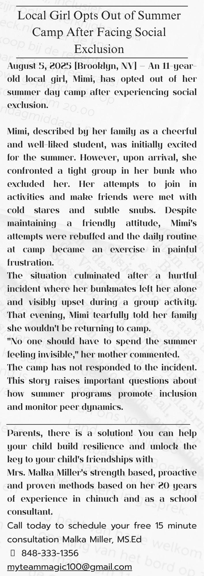 PUBLISHER Yoel Itzkowitz EDITOR IN CHIEF Esther Malky Neiman