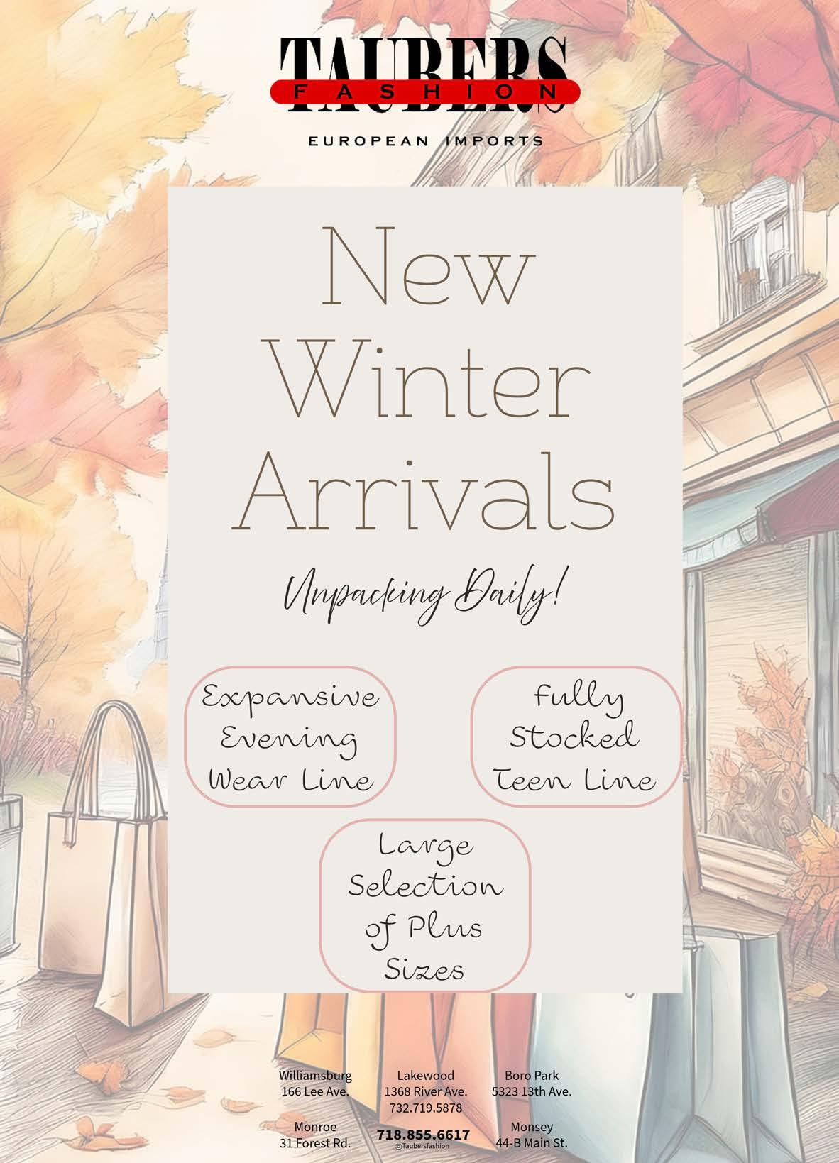 WILLIAMSBURG: 148 Classon Ave 718-387-1233 | 33 Lee Ave 718-289-0599 QUEENS 68-38 Main St 718-840-3715 STATEN ISLAND: 718-534-7408 LONG ISLAND LAWRENCE: 516-512-1733 GREAT NECK: 516-642-1435 WOODMERE: 718-974-0127 FIVE TOWNS: 445 Central Ave 516-708-0123 MONSEY: 40 Ellish Pkwy 845-426-1675 / 845-425-9053 NEW ROCHELLE: 718-475-1934 MONROE: 80-82 Forest Rd 973-412-3952 NEW SQUARE: 718-840-3459 LAKEWOOD: 448 Faraday Ave 732-806-7584 | 1533 Prospect St 732-399-9998 TEANECK: 478 Cedar Lane 732-994-2051 WEST ORANGE: 456 Pleasant Valley Way 973-731-0770 NEW JERSEY ELIZABETH: 5 Slater Dr. 732-994-2032 FLORIDA: 305-602-0158 | 1091 NW 31st Ave 845-915-9891 CHICAGO: 2912 W. Devon Ave 773-569-1770 BALTIMORE: 301 Reisterstown Rd 667-355-6052 BOSTON: Israel Book Shop 410 Harvard St 617-566-7113 LOS ANGELES: 323-283-9040 CANADA TORONTO: 2835 Bathurst St 647-490-3838 MONTREAL: 2155 Noël St 514-880-2458