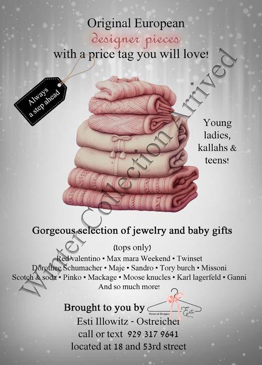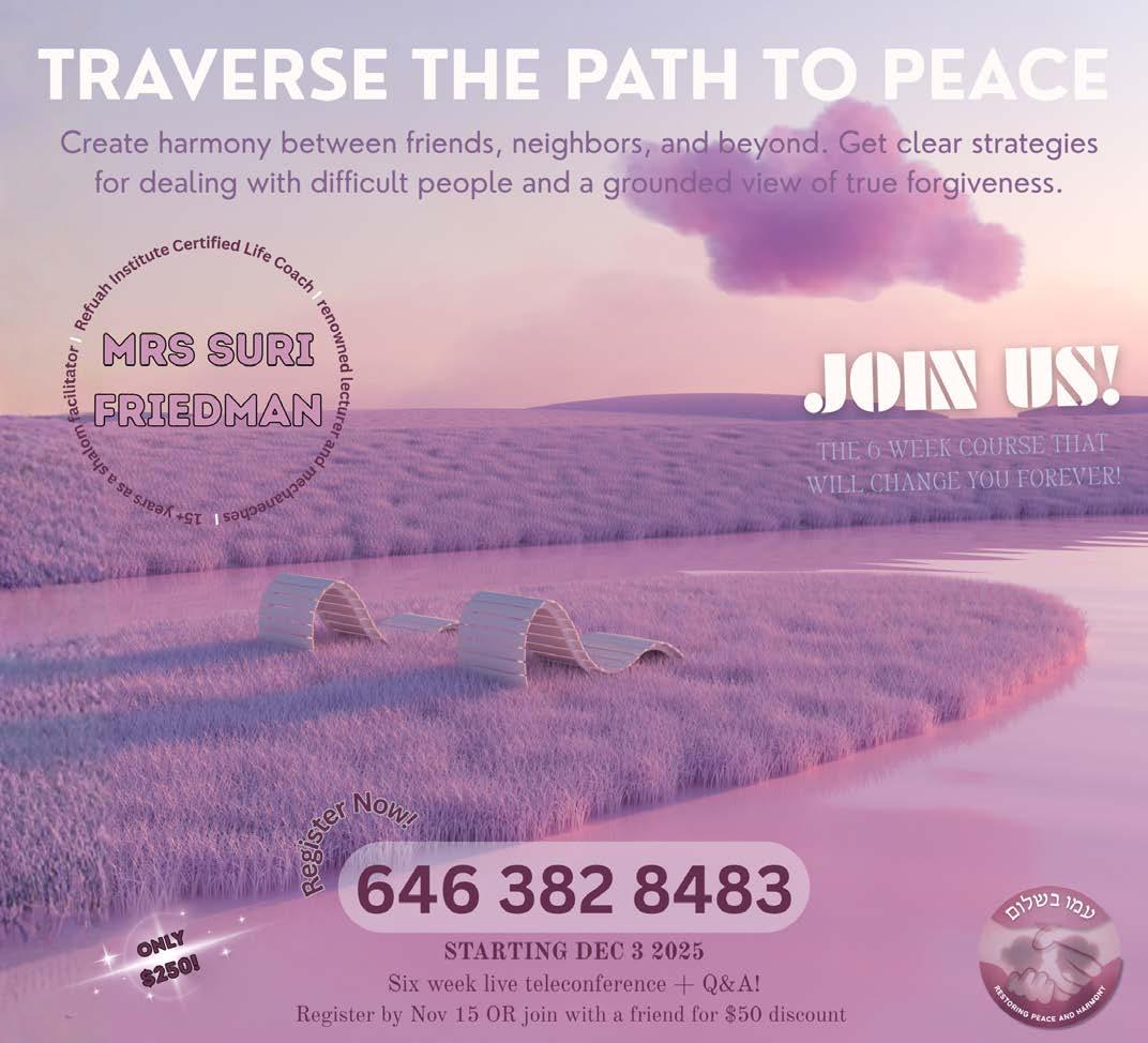 The renowned Rebetzin Aidel Miller from Yerushalayim Is now available to remove “Ayin Horah” over the phone. Call: 718.689.1902 or 516.300.1490