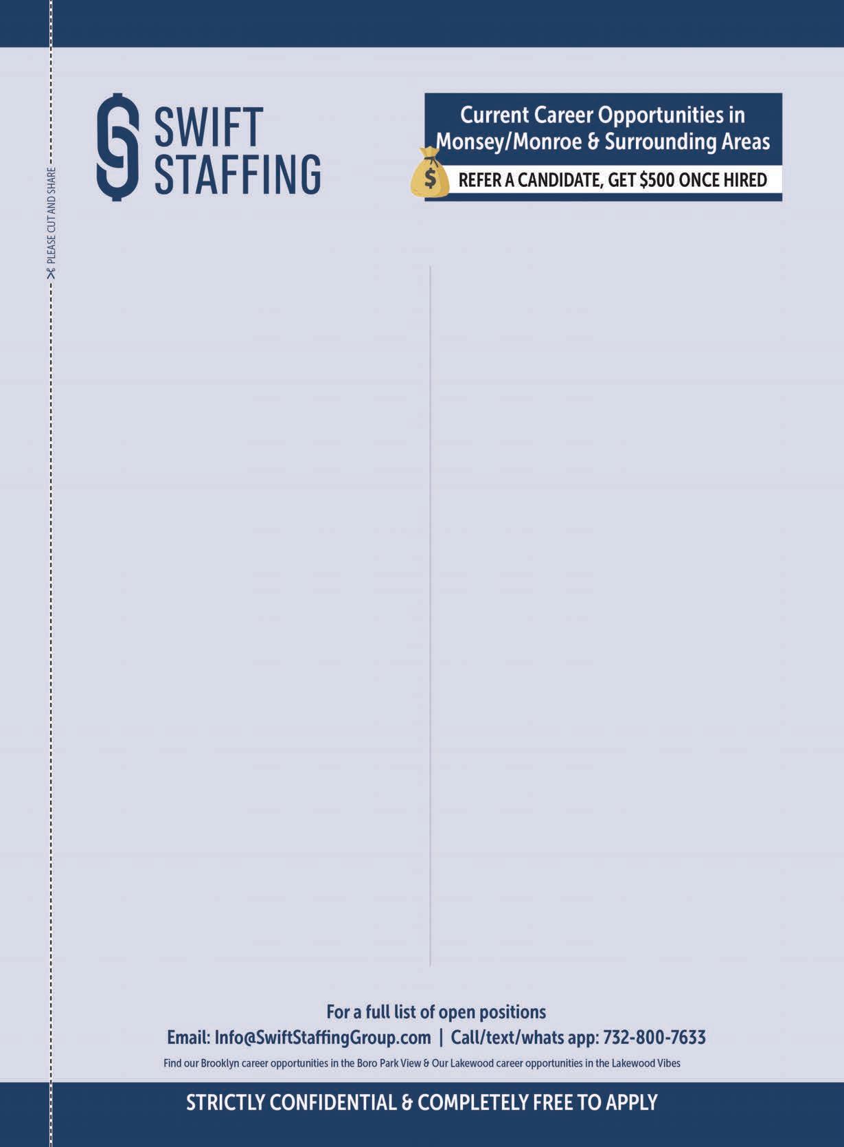 Are you looking to place your cleaning lady or are you in need of one? Call the Goita Shadchunis Hotline free of charge 716-623-4762