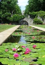 Small historic garden with walking paths, gazebo, and tea house behind Rockland County Courthouse