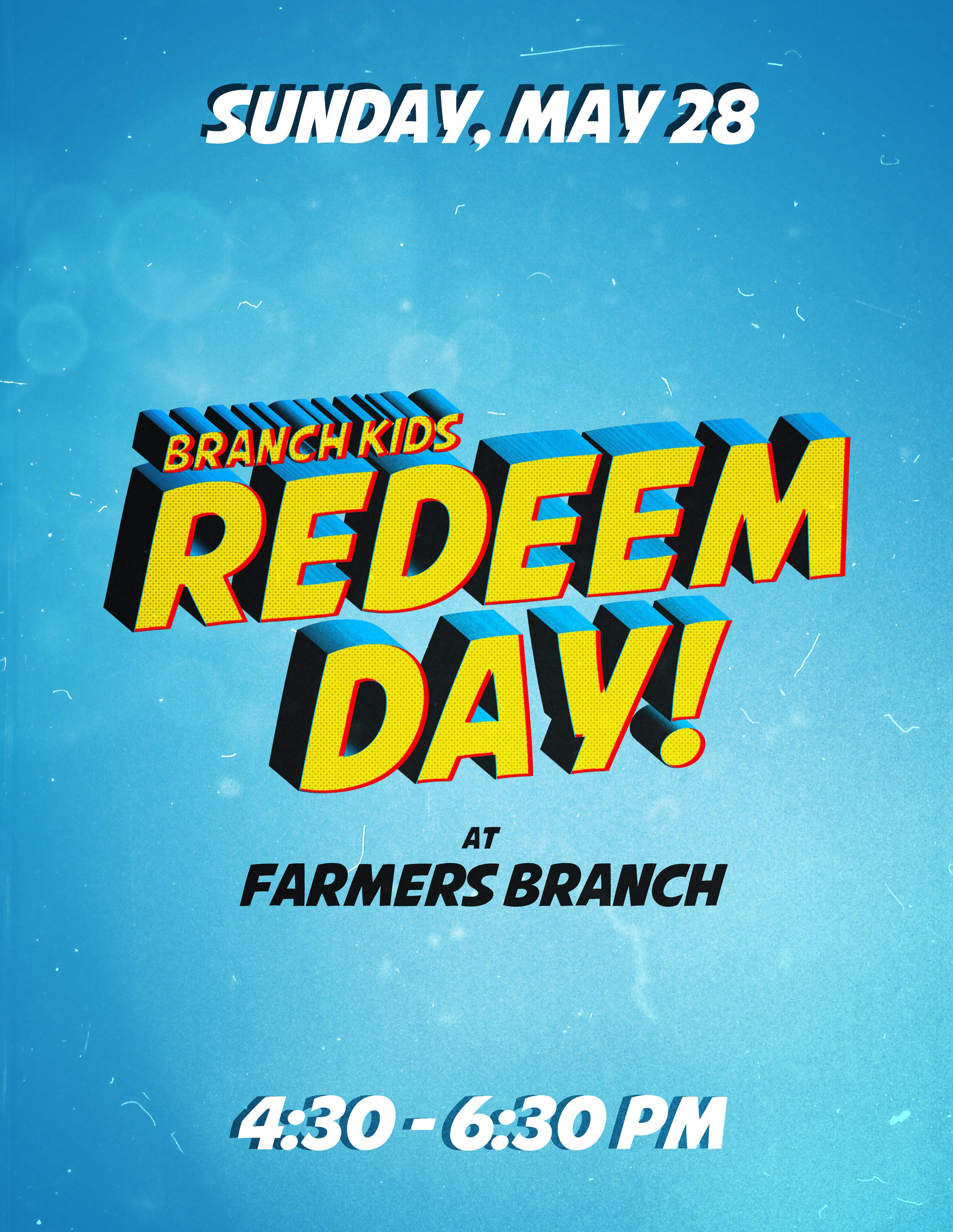 Kids in Kinder - 5th grade earn points each Sunday for memorizing our memory verses, bringing their Bibles, and attending Branch Kids. Kids get to cash in these points for cool prizes and celebrate their hard work at Branch Kids Redeem Day! There will be food, a bounce house, prize tables, and more!