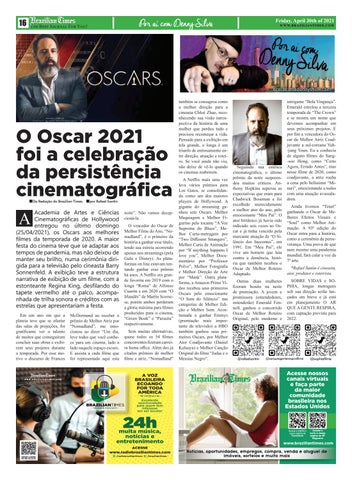 Academia de Artes e Ciências Cinematográficas de Hollywood entregou no último domingo (25/04/2021), os Oscars aos melhores filmes da temporada de 2020. A maior festa do cinema teve que se adaptar aos tempos de pandemia, mas não deixou de manter seu brilho, numa cerimônia dirigida para a televisão pelo cineasta Barry Sonnenfeld. A exibição teve a estrutura narrativa de exibição de um filme, com a estonteante Regina King, desfilando do tapete vermelho até o palco, acompanhada de trilha sonora e créditos com as estrelas que apresentariam a festa.