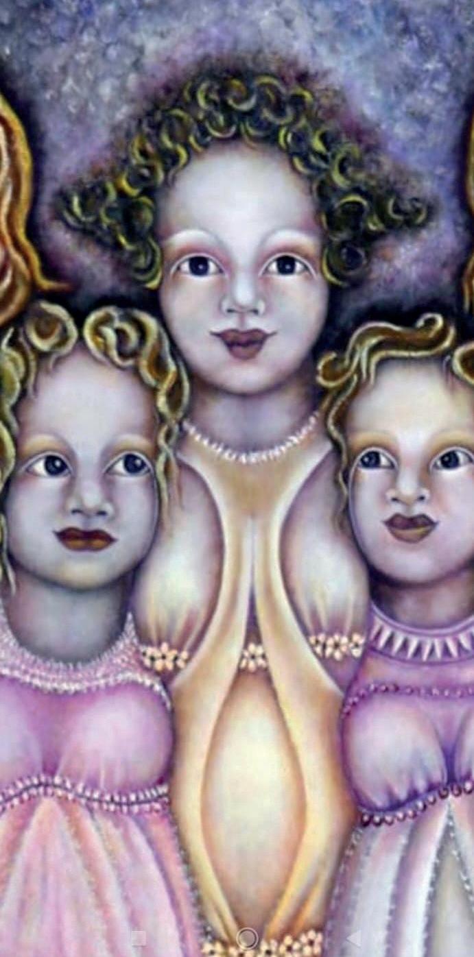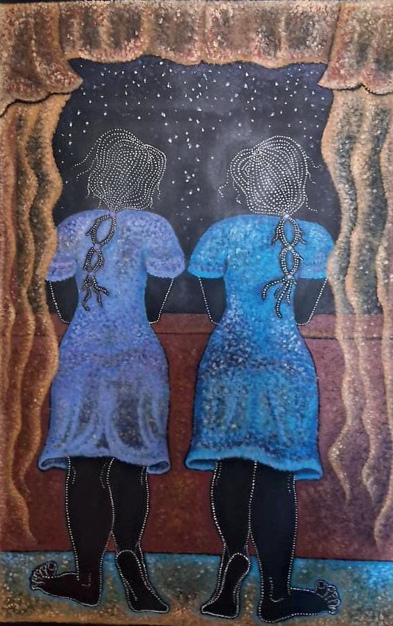 Thelma Quevedo pinta “mulheres unidas por laços invisíveis, em um momento de tanta violência contra nós. Merecemos leveza!”. Para contatos com Thelma Quevedo: 55 31 98899-1264