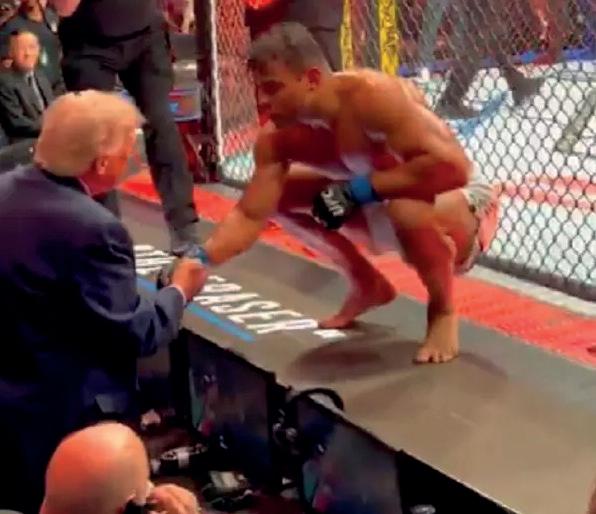 dentro do octógono, mas também pelo que aconteceu logo após o encerramento da luta. Entre os espectadores ilustres presentes no evento estava o então presidente dos Estados Unidos, Donald Trump, conhecido por sua proximidade com o universo do MMA e por marcar presença em grandes eventos esportivos.