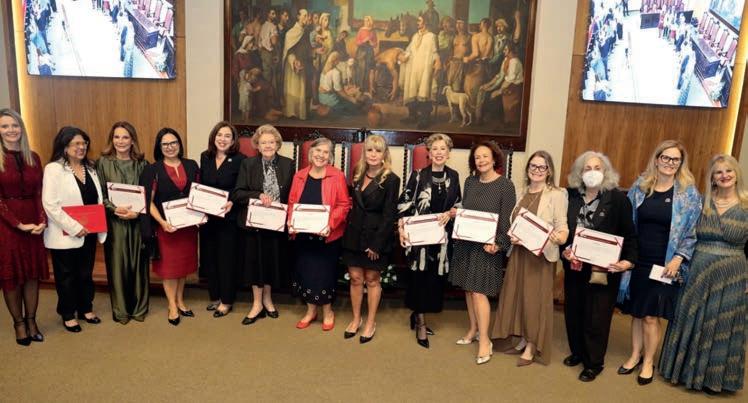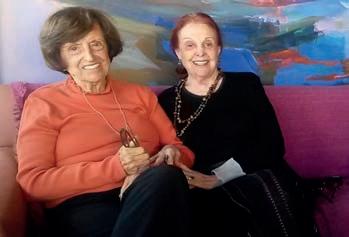 Aqui vemos artistas plásticas Maria Helena Andrés, fazendo 100 anos, com Teresinha Soares, que foi alvo de página no “Brazilian Times”, e que recentemente nos deixou aos 98 anos. Ao fundo, suavizante pintura abstrata de Andrés. Expoentes admirados.