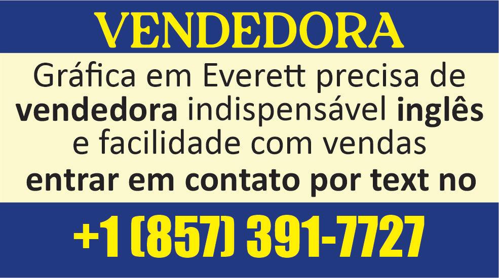 Grafica em everett - precisa de vendedora indispensável ingles e facilidade com vendas entrar em contato por text no +1 (857) 3917727. #S