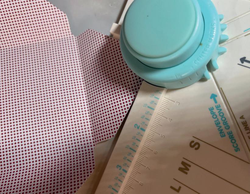 No meu caso, eu coloquei o papel na marcação de 2 5/8 “, fui furando e vincando o papel na linha A, depois e só ir girando o papel no sentido anti horário e encaixar a linha “envelope score groove”, faça isso nos 4 lados.