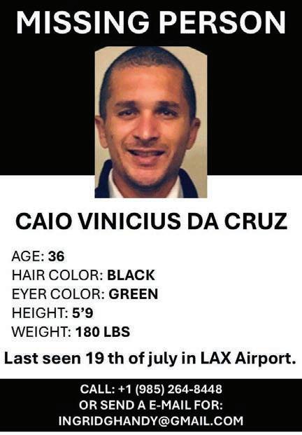 De acordo com sua irmã, Ingrid da Cruz, que acompanha as buscas do Brasil, os pertences de Caio — entre eles celular e carteira — foram encontrados no aeroporto de Los Angeles. “Ele já teve crises antes, mas nunca desapareceu dessa forma. Estamos muito preo-