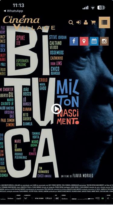 Elegido por Flavia Moraes como mais um grande orgulho do seu trabalho. “Com este documentário do cantor compositor Milton Nascimento, nao tive a intençao de contar sua histótia, pois essa seria bem mais longa, através de sèries, pois Milton è um gigante. Isso foi apenas parte de sua despedida dos palcos”. Disse a autora: Envolvido nesse momento em que Milton comemora tbem seus 83 anos de Vida, o festival vem bem e bem recebido pela grande Comunidade Brasileira em Nova York, formada por Artistas, Musicos, Empresarios, emfim por grande parte da populacao que apoio a Cultura Brasileira em Nova York.