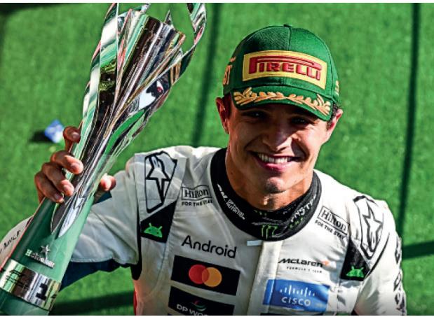 fora na primeira curva, mas acabou por sair de pista e perder posições. Hamilton envolveu-se num duelo com o neerlandês e acabou penalizado em 10 segundos por ter ganho vantagem fora da pista. Norris, entretanto, impôs um rit-mo inalcançável e manteve-se isolado na frente durante pratica-mente toda a corrida. O britânico e super talentoso jovem Ollie Bearman foi uma das grandes surpresas do dia, conquistando o melhor resultado da sua carreira com um quarto lugar, depois de resistir à pressão de Piastri nas voltas finais. Uma bandeira amarela virtual, provo-cada por Carlos Sainz na penúltima volta, acabou por travar as tentativas de ultrapassagem de Verstappen a Leclerc e de Piastri a Bearman.