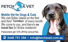 Issue 211 March 22 , 2024 79 TRADES AND SERVICES PH 3408 1014 Mon-Fri 8:00-3.00, Sat 8.00-12.00 0499 742 314 www.bcepoolsafety.com.au Pool Safety Inspections POOL SAFETY INSPECTIONS POOL & SPA EQUIPMENT TILING & RENOVATIONS M.E. TILING & RENOVATIONS SECOND HAND GOODS TILES & ACCESSORIES CONTAINER, CARAVAN & BOAT STORAGE AVAILABLE CAREFUL, COURTEOUS OWNER/OPERATOR Busy Fingers Op Shop 38 Cotterill Ave, Bongaree Phone: 3408 1014 Email: busyfingers1@bigpond.com www.busyfingersfundraiser.com Great bargains on clothing, shoes, electrical, tools, art, kitchen, furniture, linen, toys and much more. Free pick and low cost delivery VOLUNTEERS ALWAYS WELCOME! Make friends whilst helping the Bribie Island Community Monday-Friday 8.30-3.00 and Saturday 8.00-12.00 WELDING & STEEL SUPPLIES Service & Repairs Alcoholics Anonymous meets on Bribie Island 3 times per week - I.D. - 7.30pm. Church of Christ hall, cnr of Fifth aditions - 7pm - Church of e and Foley St Bongaree. - I.D. - 7.30pm. Banksia Lodge, corner of Sunderland Drv and Solander Esp, Banksia Beach Contacts: Jaime 3408 9798 Steve 0409 560 561 coMMUNity NoticeS Ph. Richard on 0425 477 639 to book your space or email thebribieislander@gmail.com Come One, Come All, Car Rodeo Corner of First Ave & Queen St, Bongaree. Every Saturday from 1:00pm At the coffee shop behind the library or Further details call Dennis on 0418 159 116 Directory Let’s KeepIt Local! Ph. Richard on 0425 477 639 to book your space or email thebribieislander@gmail.com tileconnect where the pieces come together 3/75 Lear Jet Drive, Caboolture 5432 4840 www.tileconnect.com.au quality products impressive displays competitive prices POOL, PUMP AND IRRIGATION SUPPLIES Wildlife Rescue Inc if you find an injured animal anywhere from Bribie Island, Caboolture, Morayfield, Narangba, Redcliffe and Clontarf. 0400 836 592 Wheels by the Water FREE PICK UP AND LOW COST DELIVERY Busy Fingers Op Shop 38 Cotterill Ave, Bongaree VOLUNTEERS ALWAYS WELCOME GREAT BARGAINS ON CLOTHING, SHOES, ELECTRICAL, TOOLS, TOYS AND MUCH MORE 07 3517 2406 wilsonco.com.au Shop 1, 33 Benabrow Ave (next to Big Bun Bakery) Your best experience Real Estate local SELL WITH US A N D S A V E BOOK KEEPING + COMPUTER SERVICES + GRAPHIC DESIGN + REMOVALS + MEDICAL + PET CARE PROFESSIONAL Services Remax Advanced Bribie Island 2/2 Eucalypt St, Bellara Phone (07) 3408 4071 Remax Advanced| Ningi 2/1102 Bribie Island Rd, Ningi Phone (07) 3408 4071 your ad could be here Phone Pete for pricing 0448 448 457 2 dogs GRAPHICS & DESIGN • LOGO DESIGN • SIGNAGE • BANNERS • TYPESETTING • BUSINESS CARDS • MENUS • VEHICLE SIGNAGE • AFFORDABLE WEBSITES 0405 470 630 E: twodogsgraphicsanddesign@yahoo.com W: www.2dogsgraphicsanddesign.com imagine... create... design... 5 STAR REVIEW RATING Truck Mounted Steam Cleaning | Carpets | Upholstery | Tile And Grout | Pest Management @carpetmedicseqld 3 rooms $100 each additional room $20. each additional room $20. ARE YOU TIRED OF CLEANING YOUR HOUSE? Let us do the work for you. Bribie Dazzler Cleaning Service has some openings in our roster that just might suit your needs CALL.. Heidi on 0431 231 852 HURRY our vacancies are filling up fast ABN 71 326 381 155 BRIBIE SUPREME CLEANS • Domestic Cleans • Bond Clean & Builders Clean • Pressure Washing • Police Clearance • Fully Insured Call now for a free Quote! 0418 105 215 Live Local Support Local ABN 79964354072 bribiesupremecleans@gmail.com CLEANING &