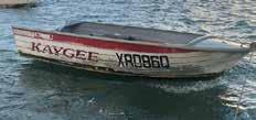 The vessel is described as a tinnie/ tender boat, registration XR086Q, with the name ‘Kaygee’ on the side.