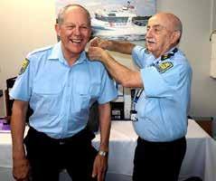 Deputy Unit Commander Allan Tranter receives his epaulettes from Unit Commander Ces Luscombe.