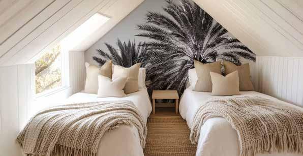 Nothing makes more of an impact than a feature wall of Wallpaper or Wall Mural. Bringing the outside in with a Tropical Theme or keeping it Retro with funky geometrics.
