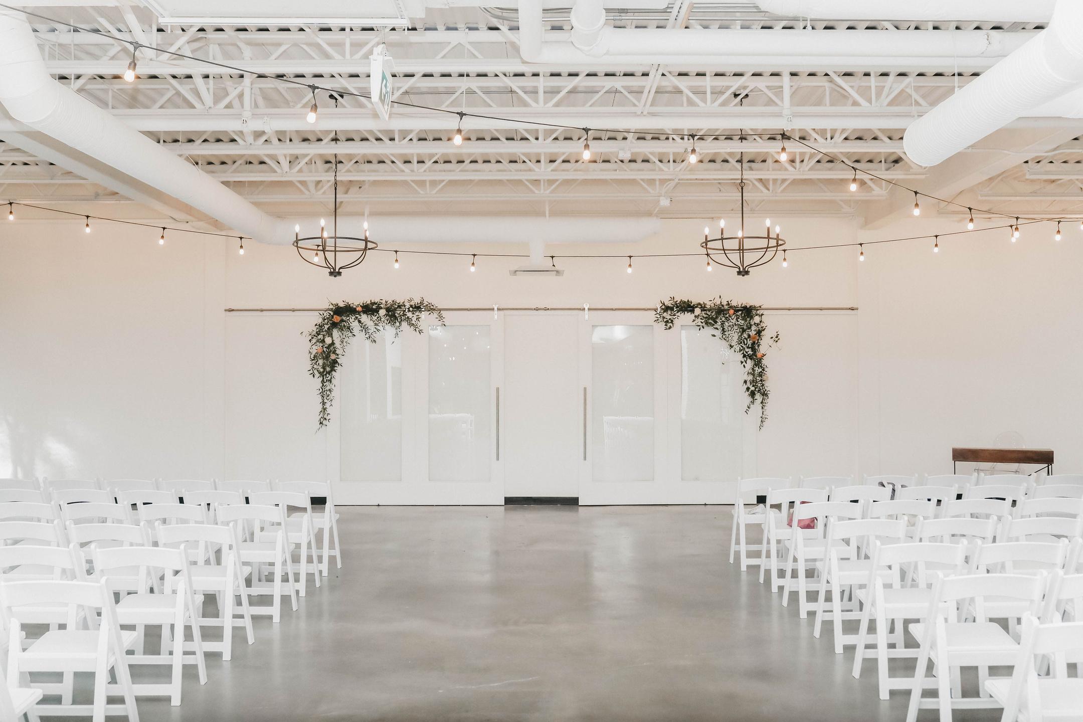 Up to 150 white folding chairs with cushions set up Flip of the room set up from Ceremony to Reception (2 hours + our team) Speaker and microphone for officiant/vows Welcome table for cards, guest book, gifts 8:00am access until 1:30am close next day