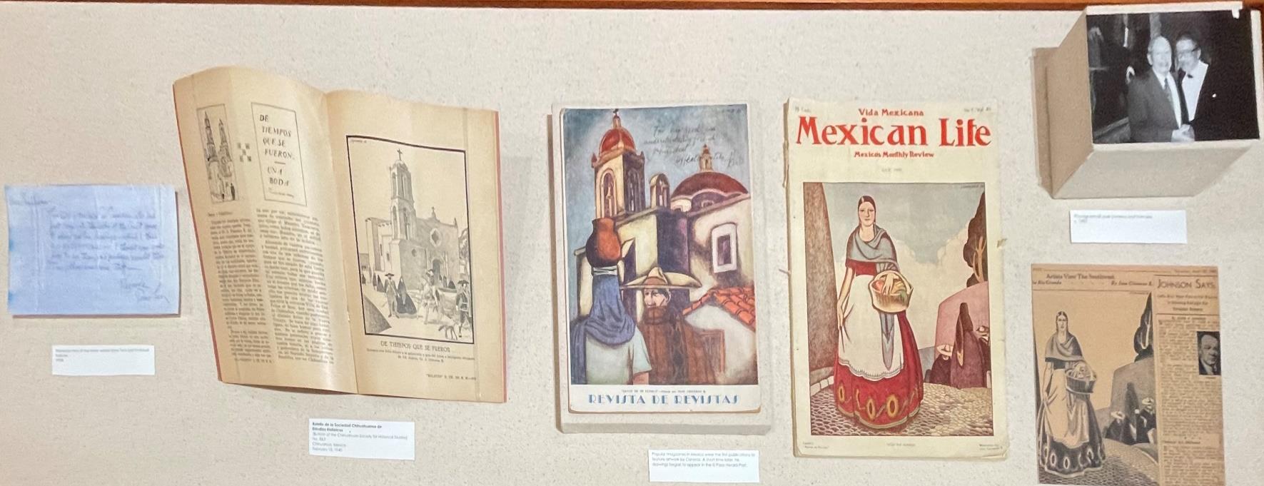 Carl Hertzog Case (Labels below) Photograph of Cisneros on the grounds of Frank Dobie’s Paisano Ranch 1969The Journey of Fray Marcos de Niza Cleve Hallenbeck