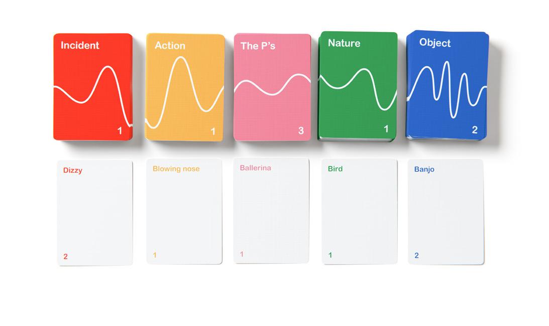 Nat: When I brought Cam into the game we had about 150 sounds and my gut told me that categories would help with gameplay. Cam then got to work splitting these out and finding the commonalities between words. Some categories like Nature, Object and Action were more obvious while Incident and The P’s (people, places and personas) took some creative thinking to come up with.