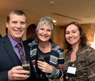 Plasterers Clive Noble and Rich Fletcher with Helen Hawke from Robert Hitchins