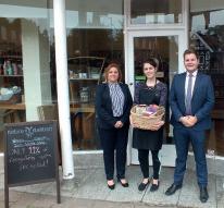 Charlie Green of GJS Dillon, owner of Nature’s Intention Emily Attwell, and Andrew Lewis of GJS Dillon outside Nature’s Intention