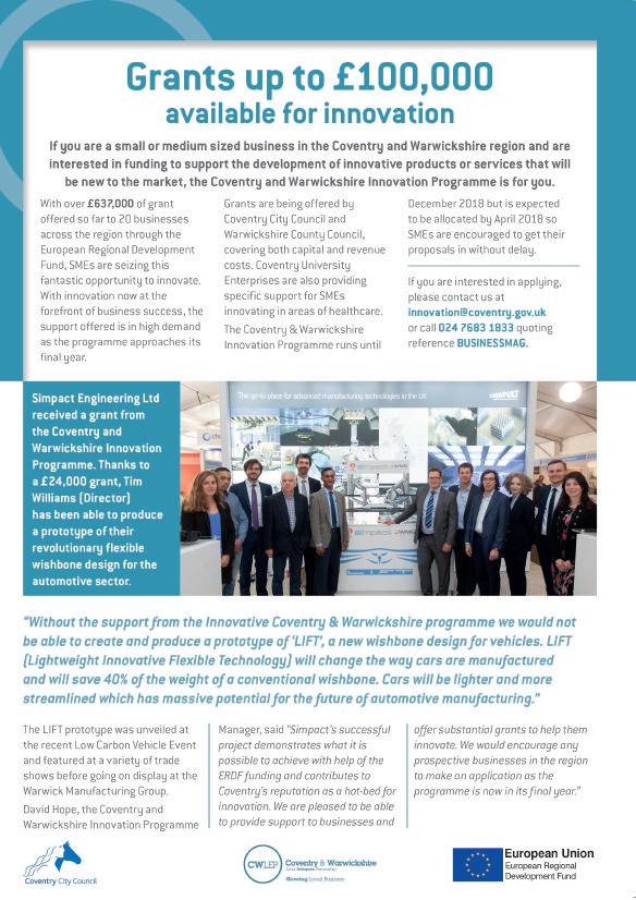 Business & Innovation Magazine is a bi-monthly magazine published by NK Media Ltd. Our readers are business owners, senior executives, key influencers, entrepreneurs, innovators and those working in further and higher education, and government departments. Any opinions expressed by those quoted in this magazine are their own and do not necessarily represent or reflect those of Business & Innovation Magazine, or of NK Media Ltd. No part of this publication may be reproduced or used in any form of advertising or promotion without the written permission of the Editor-in-Chief or Commercial Director.