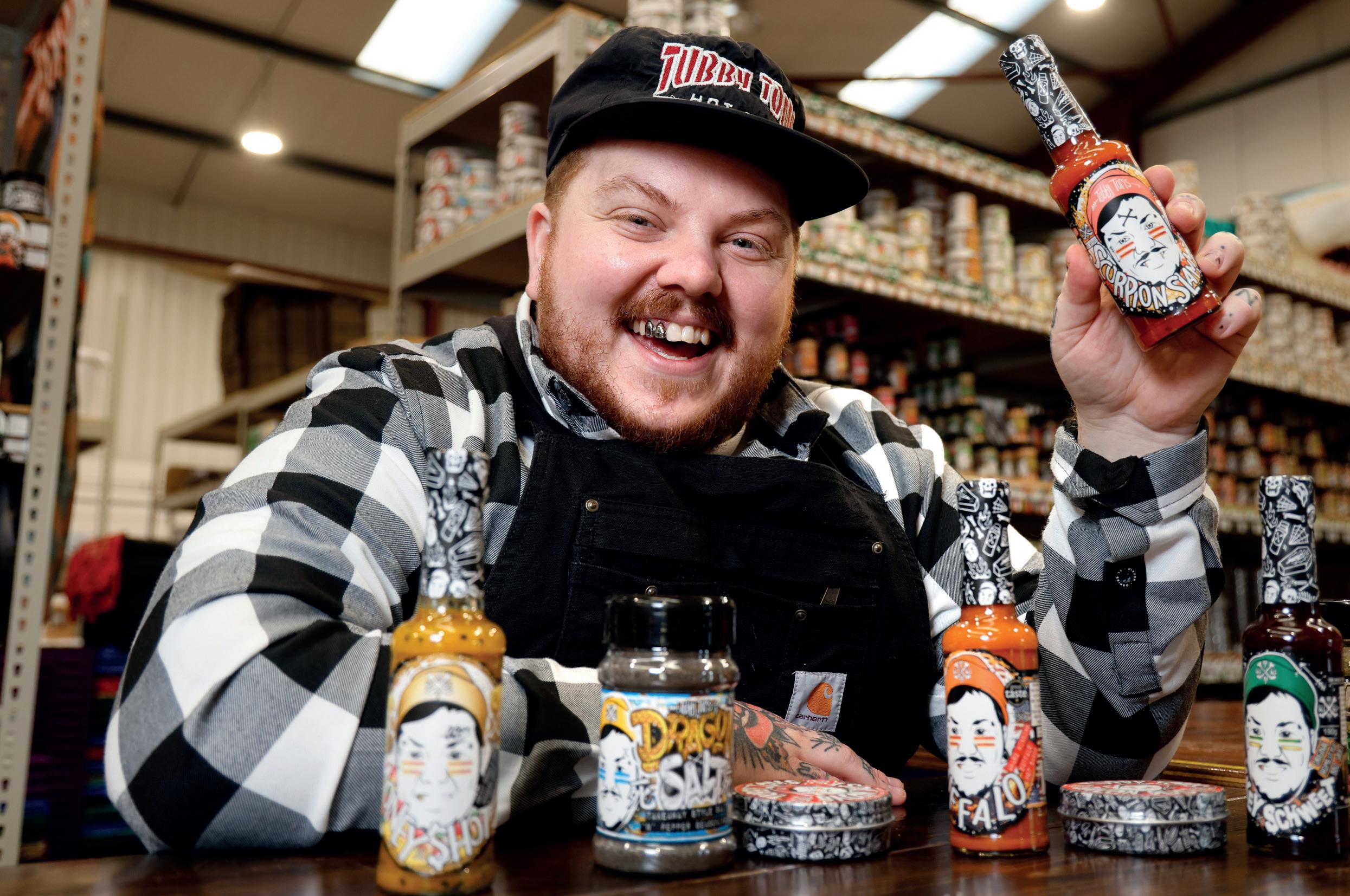 A Gloucester boy through and through, Tom Hughes is a big personality who set up his hot sauce brand, Tubby Tom’s, in 2015. His cooking creativity began when he experimented with recipes while working at Over Farm Market in Gloucester, slipping his bottles on to the shelves at the retail outlet. When they sold well he made more.