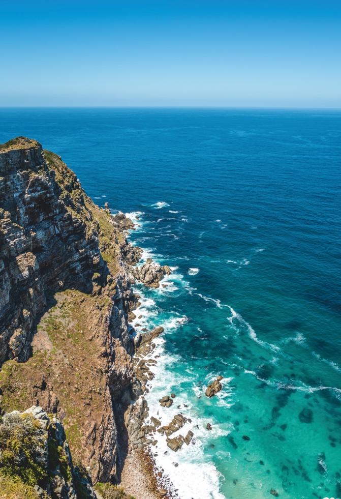 FurtherdowntheCapePeninsula,Cape PointlieswithintheTableMountain NationalPark.Here,windsweptcliffsmeet crashingsurfinadramaticdisplayofnature's power.Thoughnotthetruesouthernmost pointofAfrica(thathonorgoestoCape Agulhas),CapePointiswheretheAtlantic andIndianOceansseemtoconverge.Hike uptotheoldlighthouse,ridetheFlying DutchmanFunicular,orsimplymarvelat theendlesshorizon.