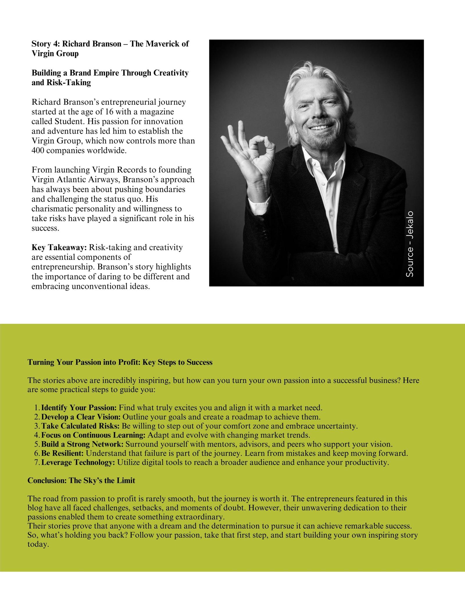 FROM PASSION TO PROFIT: INSPIRING STORIES OF SUCCESSFUL ENTREPRENEURS