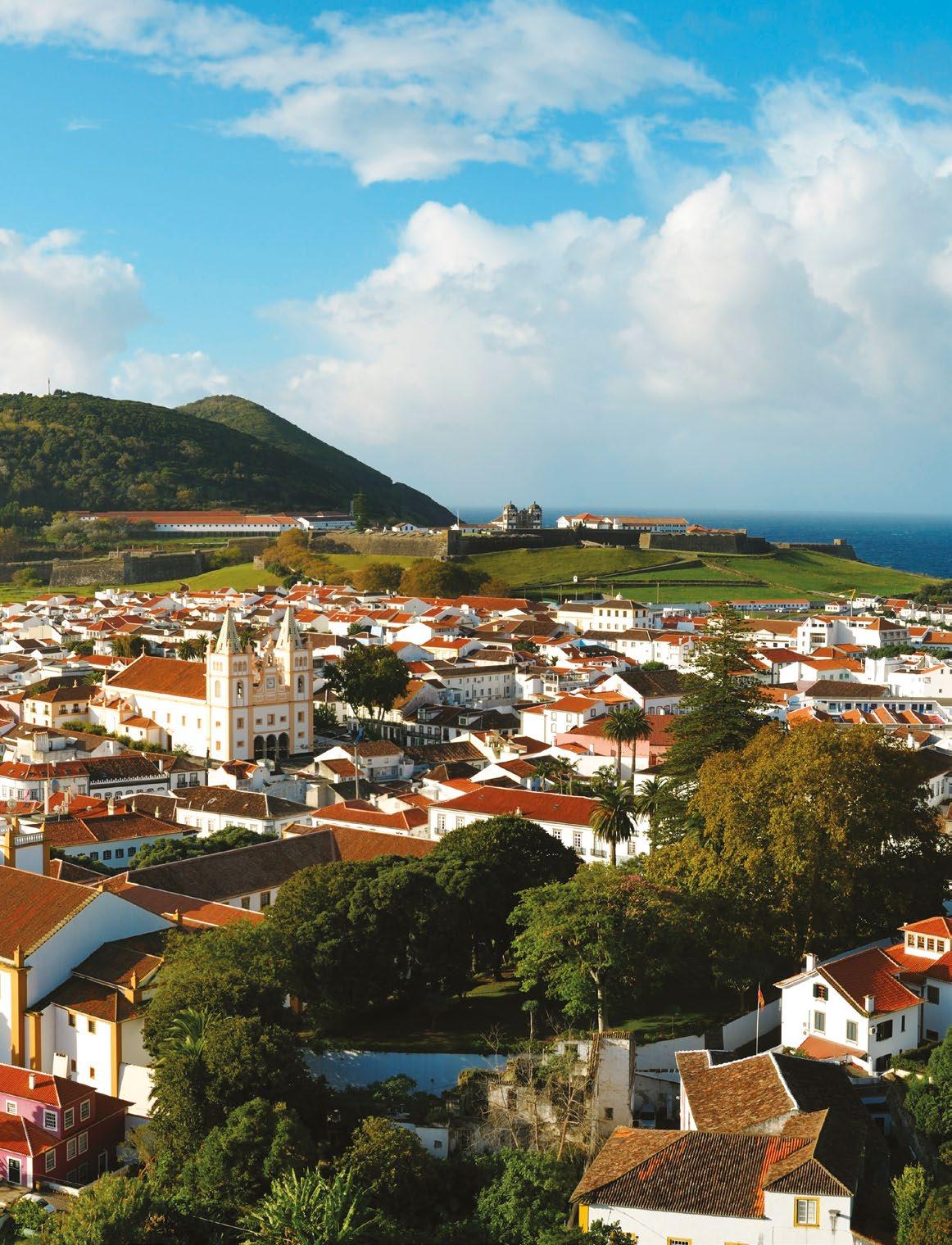 DIVINELY PERCHED ON THE MYSTERIOUS AND BEGUILING ISLAND OF SÃO MIGUEL, the Lagoa de Sete Cidades, or “lake of seven cities,” offers what is arguably the archipelago’s most spectacular natural scenery. Perched in the very volcanic craters whose ancient eruption gave rise to the Azores, Sete Cidades is the largest freshwater lake in the archipelago with depths of up to 33m in its Blue and Green lagoons, the lake’s two principle bodies. Spanning a width of 4.2km at its longest expanse, the lake is ringed by a spectacular mélange of lush green forests and fields that pour into the luscious body of water like syrup into a fresh pint of milk. Legend has it, it was here the blue-eyed Princess Antília was torn from the arms of her green-eyed shepherd loved. When forced to part by her father, the king, they each shed an ocean of tears: hers became the Blue Lagoon, his the Green.