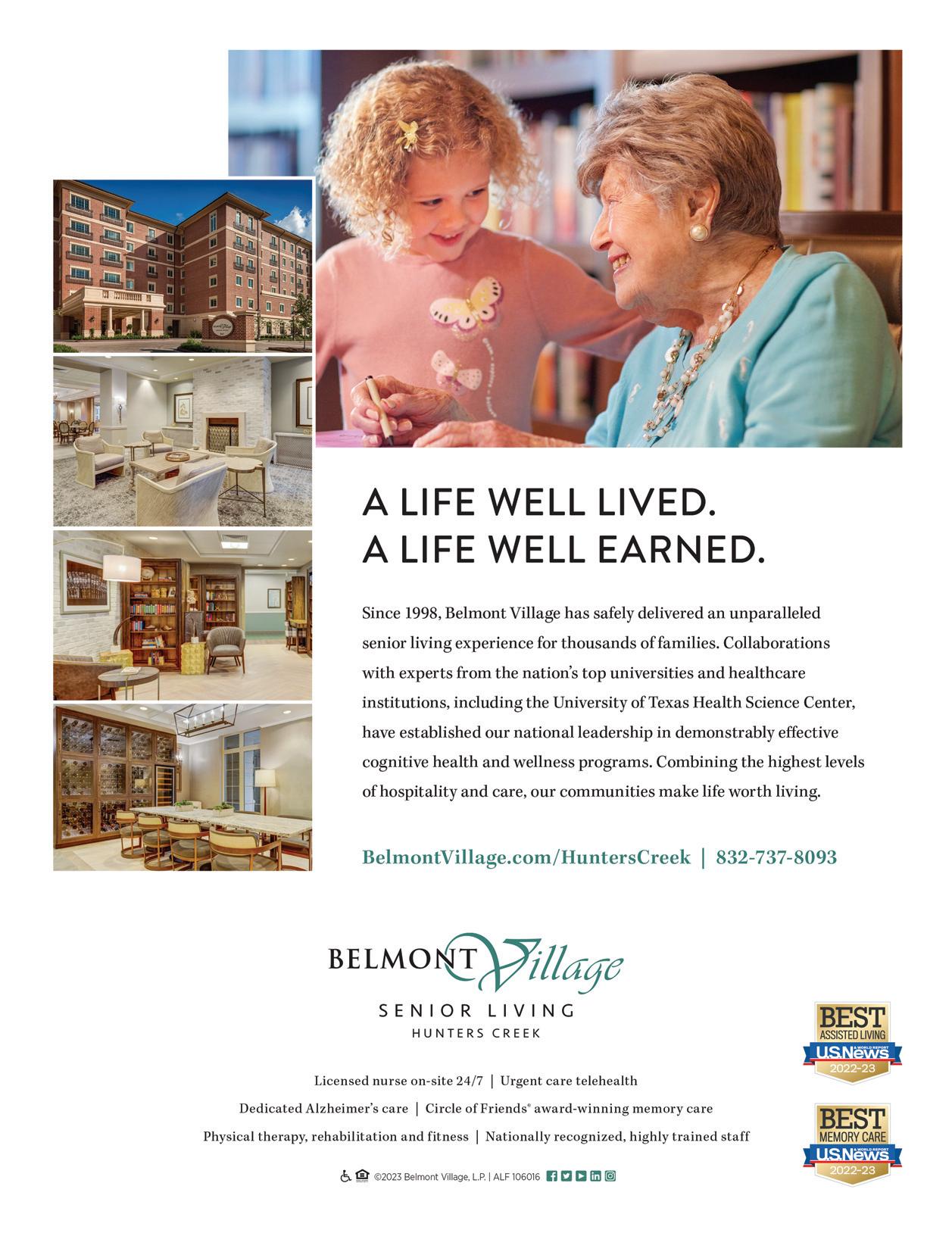 Having my picture on the cover [Tanglewood/River Oaks Buzz, Jan. 2023] has been fun. I have heard from people I haven’t seen in years. My incredible trainer, Bob Talamini, has also heard from quite a few people. I know The Buzz picked me [to be featured in Keep It Moving: Seniors in Motion by Cheryl Ursin] because of my age, however, I don’t think of myself as 87; I think we should constantly enjoy life, our friends, and our family. This fills me with all I need to enjoy life and feel young. Wishing one and all a healthy and happy New Year! Keep on moving!