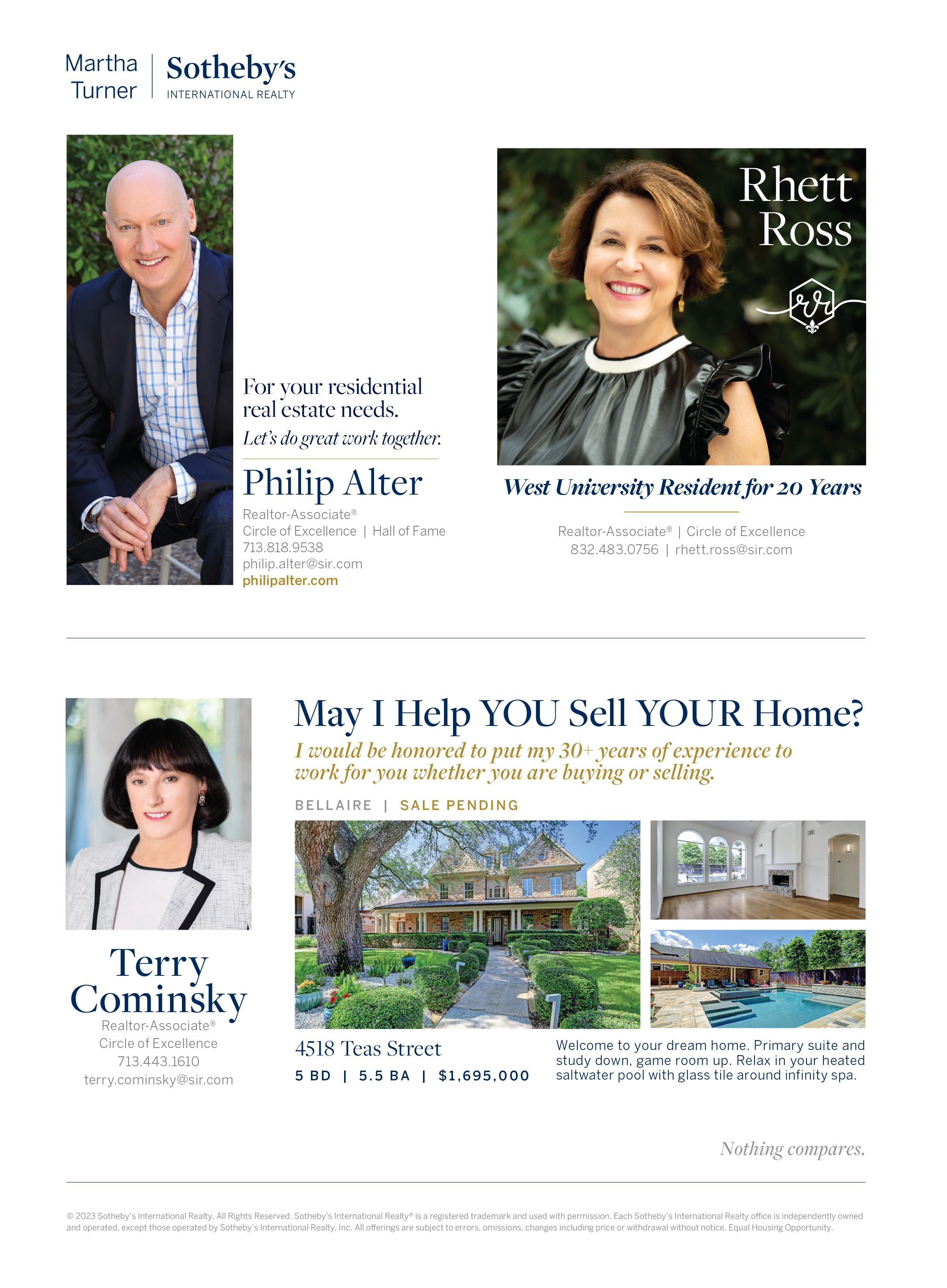BELLAIRE • WEST UNIVERSITY • MEMORIAL • TANGLEWOOD/RIVER OAKS