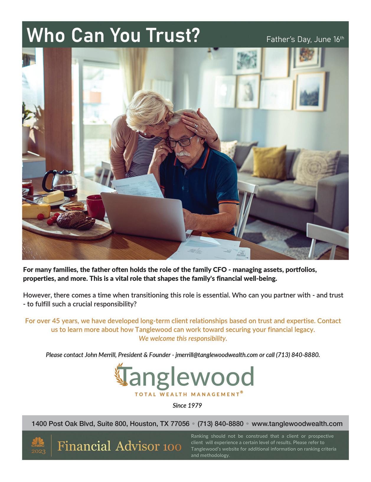 Tim Arnoult, Frances Arnoult, Kyle Kirksey, and John Kirksey (pictured, from left) enjoyed the 2024 Root Ball, La Dolce Vita, benefiting Trees for Houston. The 30th annual event, chaired by Christiane and (continued on page 60)