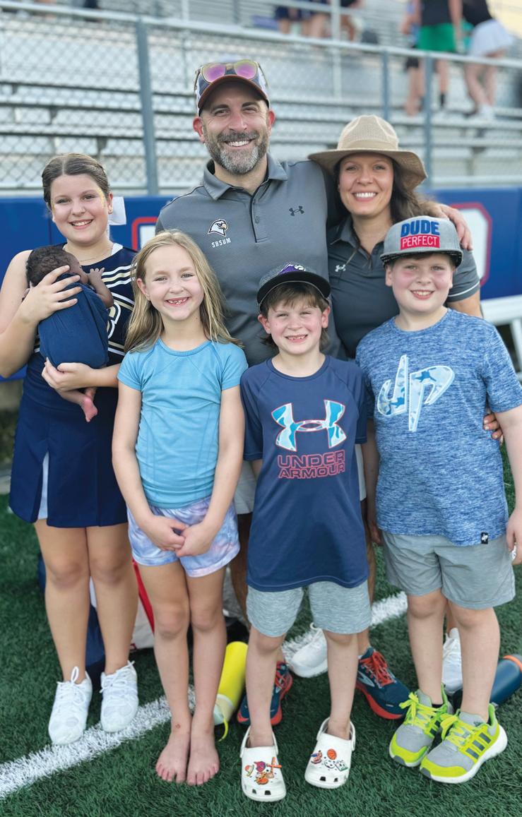 (pictured, from left) grew up together as members of Southwest Football League (SFL). Each of the boys started in the 5/6 age group and played for six years until they aged out of SFL and went on to play football for their schools. This group appeared in The Buzz Magazines in 2019 during their SFL days, and they decided to re-create the same photo five years later, now dressed in uniforms for The Kinkaid School, Bellaire High School, and Lamar High School. Families involved with SFL are known for keeping in touch after the players leave the league, and all four of these boys credit their early SFL days for instilling a love of football. “You rarely meet a starter in the prep or public leagues in our area that didn’t get their start in SFL,” says Morgan Tannery.