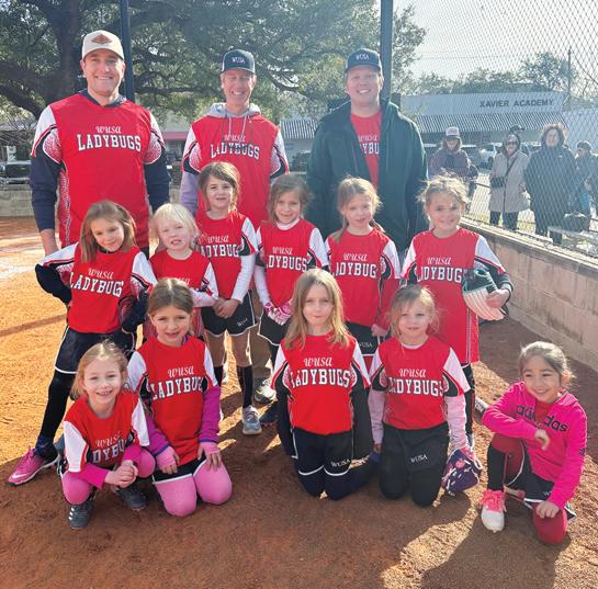 A group of friends, students at West University Elementary School and Presbyterian School, are playing this spring season on the West University Softball Association’s Ladybugs team. The players on the team range in age from Pre-K to first grade. Their coaches are (pictured, back row, from left) Andrew Bean, Will Oliver, and Jacob Tripplehorn. The players are (pictured, middle row, from left) Julia Meadows, Millie Tripplehorn, Isabel Covey, Mollie Raspino, Virginia Bean, Margot MacLaren; (front row, from left) Piper Oliver, Karis Dempsey, Clare Polky, Catherine Rahmn, and Naomi Baltodano. While most of the girls on the Ladybugs are enjoying their first year, there are a few that are in their second year.