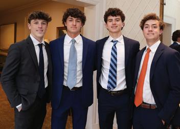 Harrison Broach, James Mittelholzer, Austin Graf, and Charlie Graf (pictured, from left) enjoyed cocktails and comedy from actor David Spade at the 12th annual Stand Up for Brain Cancer gala benefiting The Broach Foundation. More than 450 supporters gathered in the ballroom at River Oaks Country Club for a VIP cocktail hour, dinner, and comedy show. Spade greeted guests during the cocktail hour and cracked jokes while taking photos with supporters. Jamie Broach Byrd and Jeff Byrd and their children led this year’s gala, with Parker Broach opening the event with a joke that had the audience in stitches. Mistress of ceremonies Ilona Carson introduced speaker Fred Lang, MD, head of the Department of Neurosurgery at MD Anderson Cancer Center. David Spade headlined the gala to raise funds for The Broach Foundation, established in honor of James Broach, which has given more than $6 million