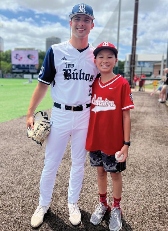 Ethan Li (pictured, at right), a fifth grader at St. John’s School, has played Bellaire Little League since the age of 7. He proudly stood alongside Tyler Hamilton, #27 (pictured, at left) from the Rice University Owls baseball team, after delivering the ceremonial first pitch at the Rice versus University of Alabama Birmingham baseball game. Ethan represented his league during the third annual Bellaire Little League Day with Rice baseball. The event brought together players and coaches from BLL for the annual tradition. National League teams from the BLL took to the field. Spectators filled the stands, enjoying the excitement for the spring season of baseball. The players enjoyed icy treats and more delicious food. Volunteers helped make the day a success, managing everything from the scoreboard to walk-up music. Ethan displayed versatility on the field, playing pitcher, third baseman, and centerfielder, and he often spends his free time supporting and cheering on his friends during their matches. Ethan possesses a genuine love for the sport of baseball and made special memories throwing the pitch out on a college team’s field.