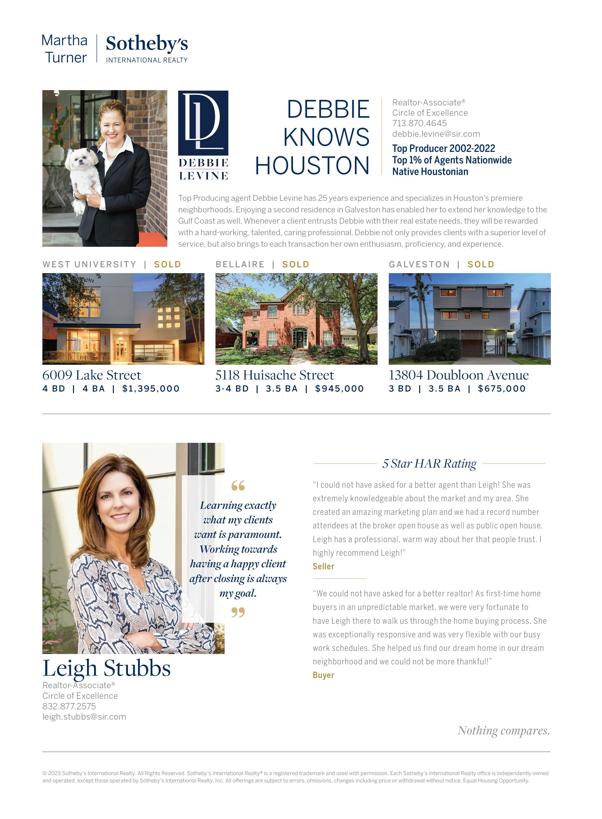 BELLAIRE • WEST UNIVERSITY • MEMORIAL • TANGLEWOOD/RIVER OAKS