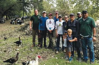 After Hurricane Beryl left Hermann Park in need of significant clean up, neighbors and community members stepped up to help. Brady Murray, Ruby Murray, Melissa Murray, Kathryn Crowder, Susan Zarate, Arielle Rogg, Talia Rogg, and Asher Rogg (pictured, from left, with park employees) wasted no time lending helping hands to rake and clear debris along paths and near the Park Commons to get our beloved park back to normal. Even after the hurricane damage is cleared, Hermann Park always welcomes help from the community with a range of volunteer opportunities. See hermannpark.org/volunteering-opportunities
