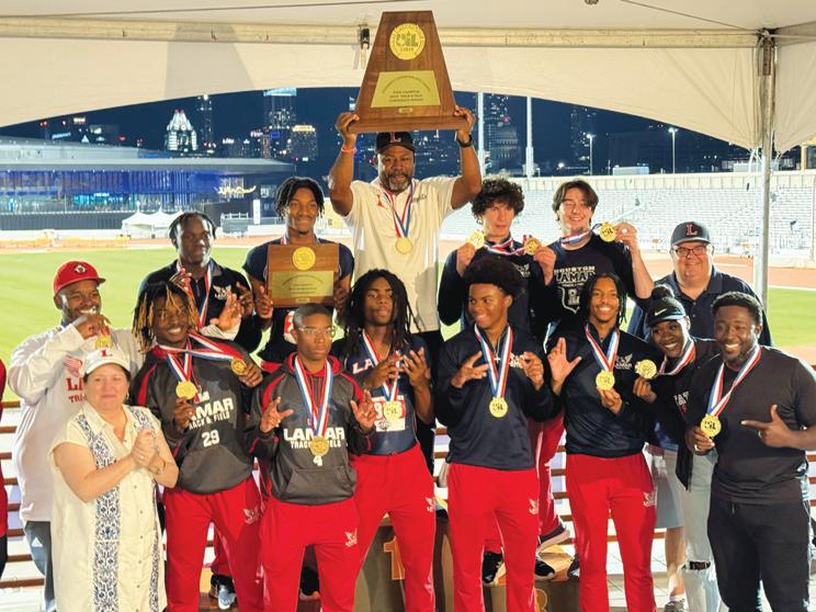 STATE CHAMPIONS With its dramatic victory in the 4x400 meter relay on the final race of the meet, the Lamar Texans captured the UIL Boys 6A State Track & Field Championship.