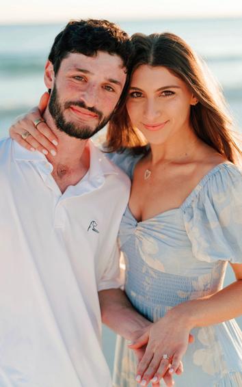 Sean Folloder and Zoë Kampf (pictured) met as young students at The Shlenker School and are now engaged to be married. They crossed paths many times before falling in love, including Zoë being a preschool student in Sean’s grandmother’s preschool class at Shlenker, Zoe’s cousin having her Bar Mitzvah with Sean, and both attending Texas A&M University. Many years later, they met again at Shlenker and this turned out to be the perfect timing. Sean was helping his grandmother, Barbie Freedman, at work in her toddler class and bumped into Zoë who was working as a PreK-4 teacher. Barbie always thought the two would make a good couple and they eventually took her advice and went on a date. Three and a half years later, Sean proposed in their favorite Florida vacation spot with a beach picnic and roses in front of a beautiful sunset. They are planning a 2026 wedding in the Heights with Rabbi David Lyon officiating. Barbie was right…Zoë and Sean are “B’shert!” (meant to be).
