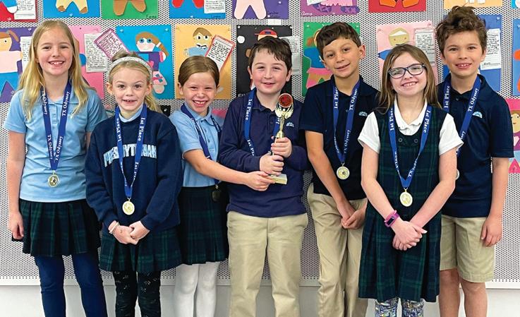 Presbyterian School sent seven teams to compete at the Odyssey of the Mind (OM) Houston Regional Tournament and made an impressive win, advancing all seven teams to the state tournament at San Jacinto College. The winning teams represented students from third grade, fourth grade, fifth grade, and seventh grade. Each team tackled a long-term problem for six months and brought their solutions to the competition. The third-grade team chose to compete in The OM-Mazing Race category that