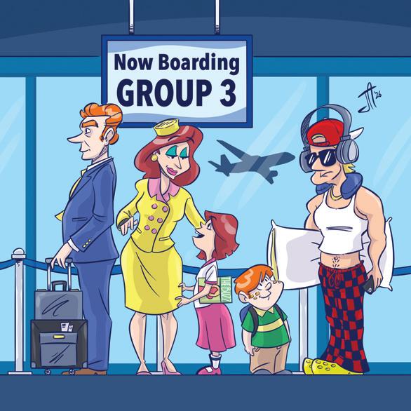 the lack of undergar ments people feel the need for!” she says, remembering a recent trip to Cancun. “The whole plane is loaded and we’re waiting for one passenger. Finally, she gets there and she’s in a skin-tight white tshirt with zero bra and everything going to and fro. The whole plane is waiting, and I could see everyone’s head pop up as she walked down the aisle. You don’t want to sit next to that!”