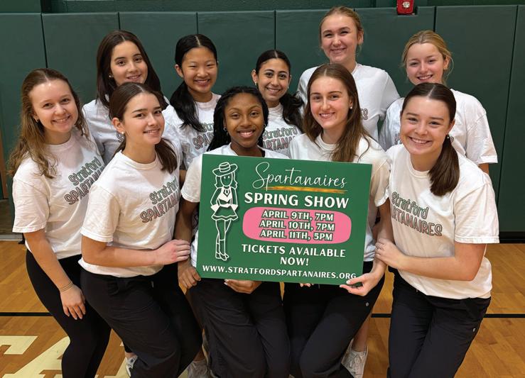It’s time for the Stratford Spartanaire Dance Team’s Spring Show! This year’s show, The Time of Our Lives!, features the team’s contest routines, original choreography, and the crowdfavorite “Last Dance” kick routine. Get your tickets for the beloved annual event with performances scheduled for Thursday, April 9 and Friday, April 10 at 7 p.m. and Saturday, April 11 at 5 p.m. in the Stratford High School Auditorium. Tickets are available at stratfordspartanaires.org. Pictured are Spartanaire officers (top row, from left) Colbie Corn, Hallie Hardig, Zoe Ju, Ingrid Rincon, Natalee Stegent, Georgia Dickey; (bottom row, from left) Mary Minyard, MacKenzie Hart, Colette