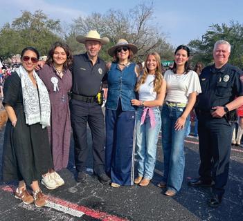 RUNNING FOR CHANGE Emma Mankarious, a Memorial High School junior, worked with The Mental Health Society to organize the inaugural Rodeo Run, which supported student access to therapy. Pictured (from left) are some key figures who helped make the event a reality: Rania Mankarious, Emma Mankarious, Officer Larry Boggus, Dr. Jenna Rosen, Morgan Matherne, Emily Morris, and Chief Ray Schultz.